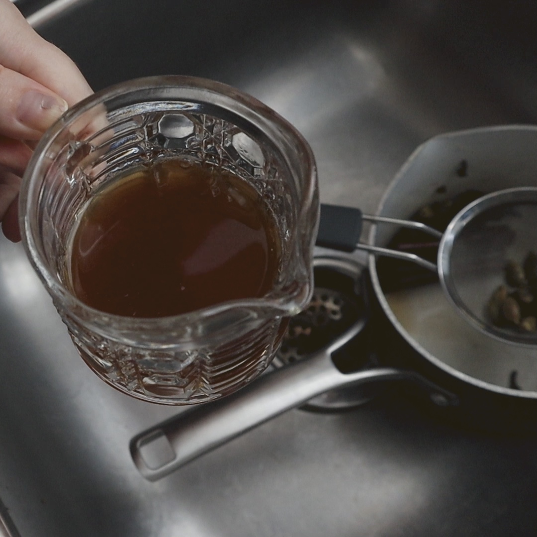 Boil together until reduced by about half. Take off of heat and let cool together until room temperature; aka walk away for 30 minutes to an hour. Strain out the spices and store, covered, in the refrigerator for about a week. Use your senses, if it looks or smells off it’s always a good idea to dump it. Mine doesn’t tend to stick around for much more than 3 to 5 days since I have a tendency to use it liberally.