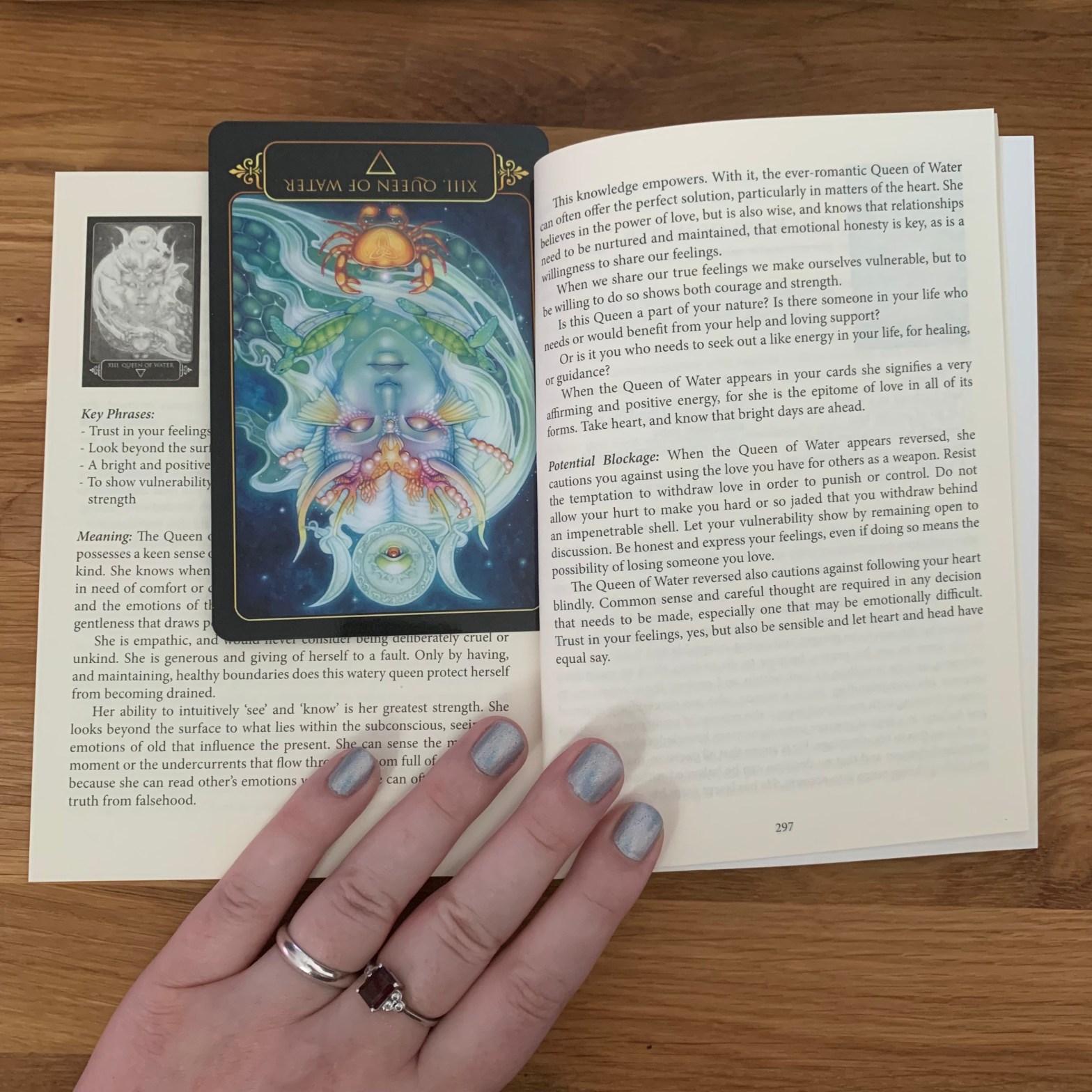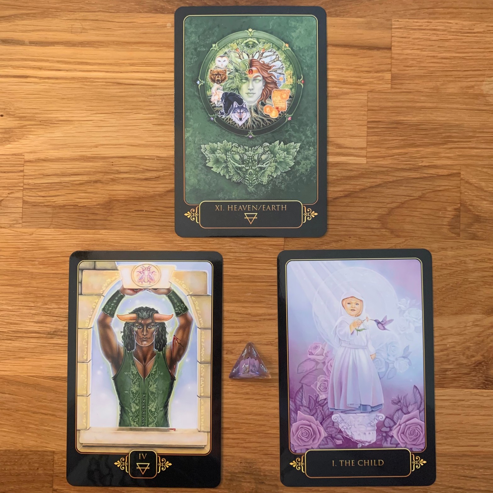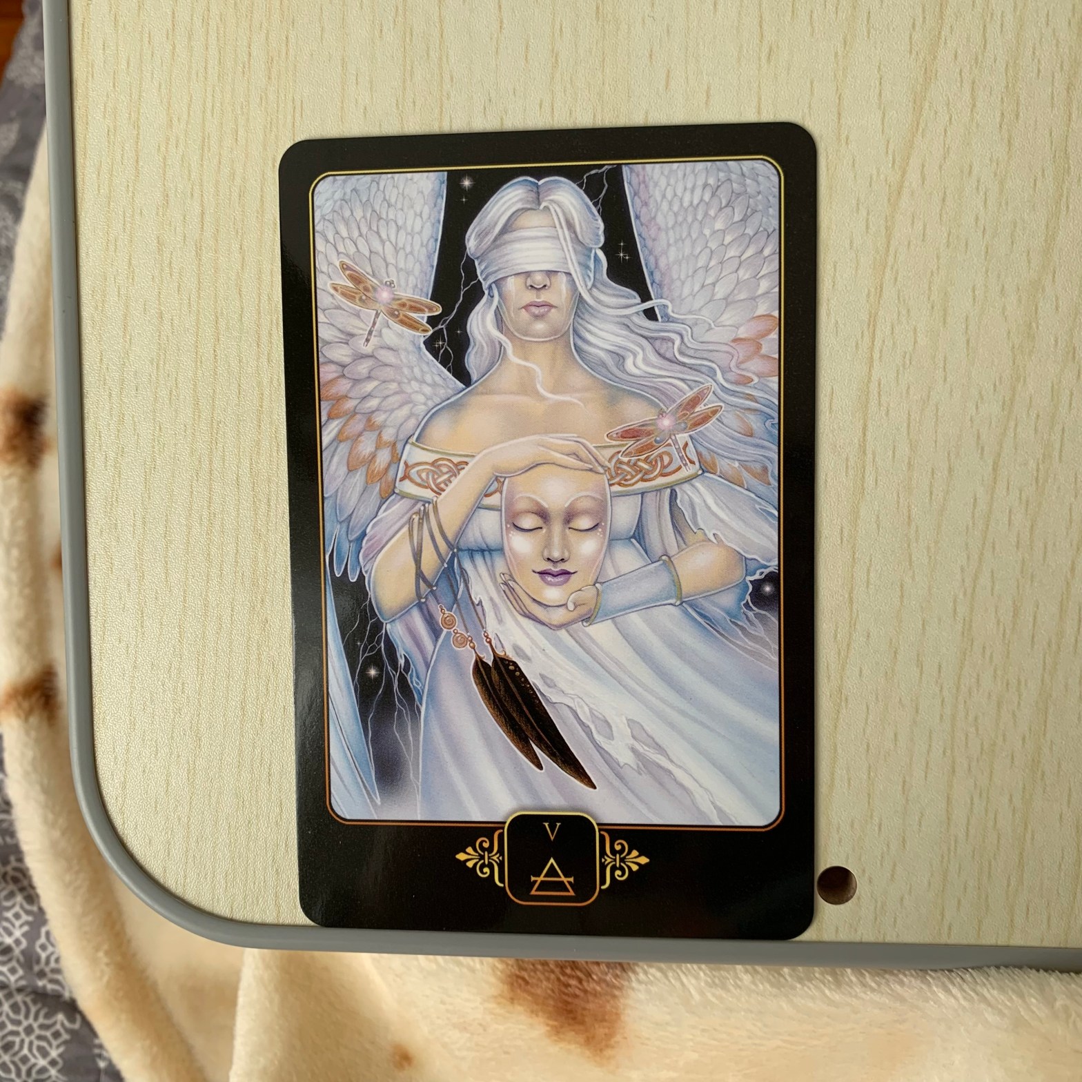 This card was pulled from Ravynne Phelan’s Dreams of Gaia Tarot set which comes with its own guide book since it’s a bit of a cross between a standard and oracle deck.